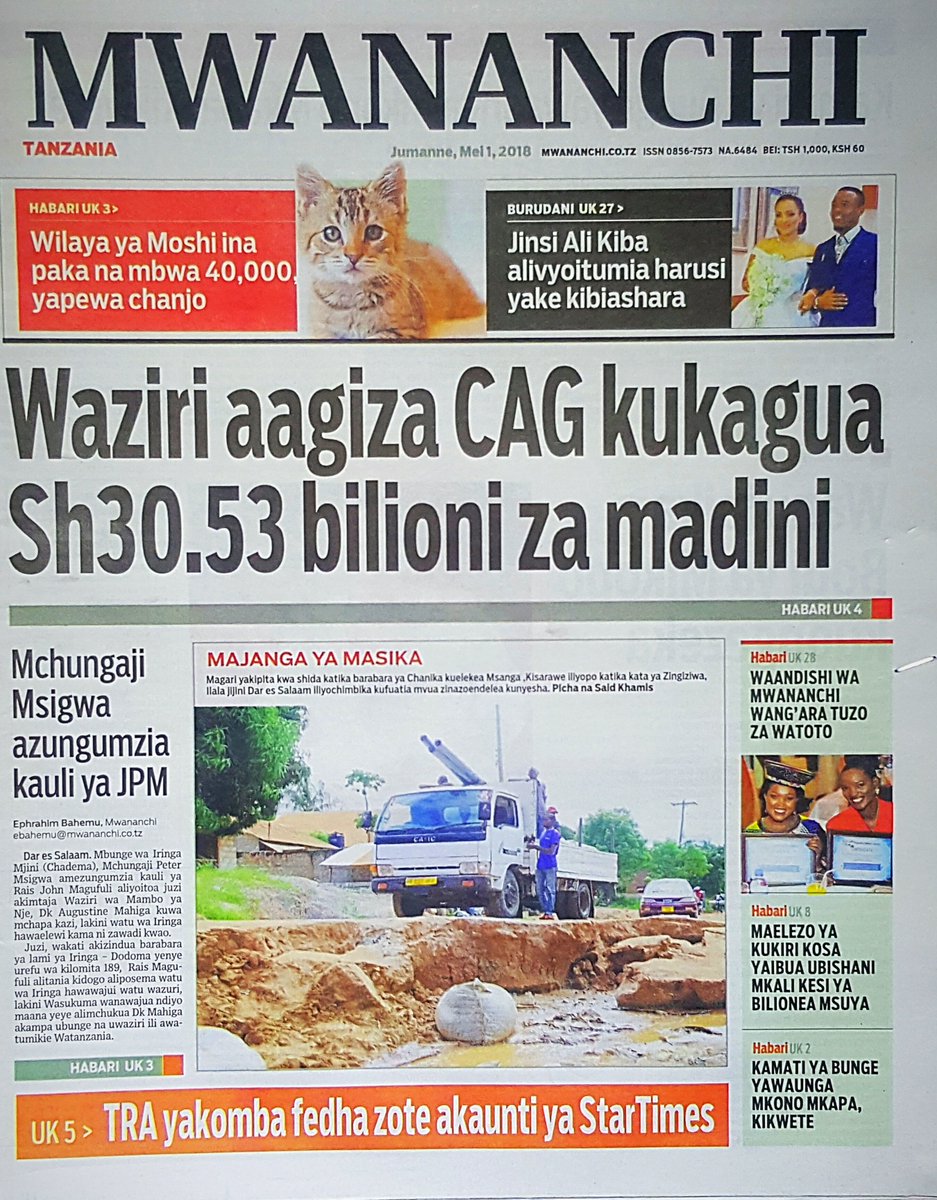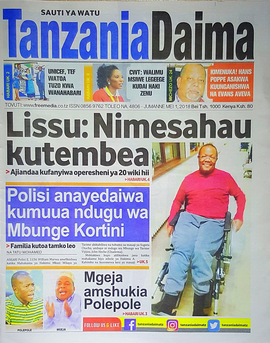 HAYA HAPA MAGAZETI YA LEO MEI MOSI yaliyomo lissu Nimesahau kutembea ajiandaa kufanyiwa upasuaji wa 20